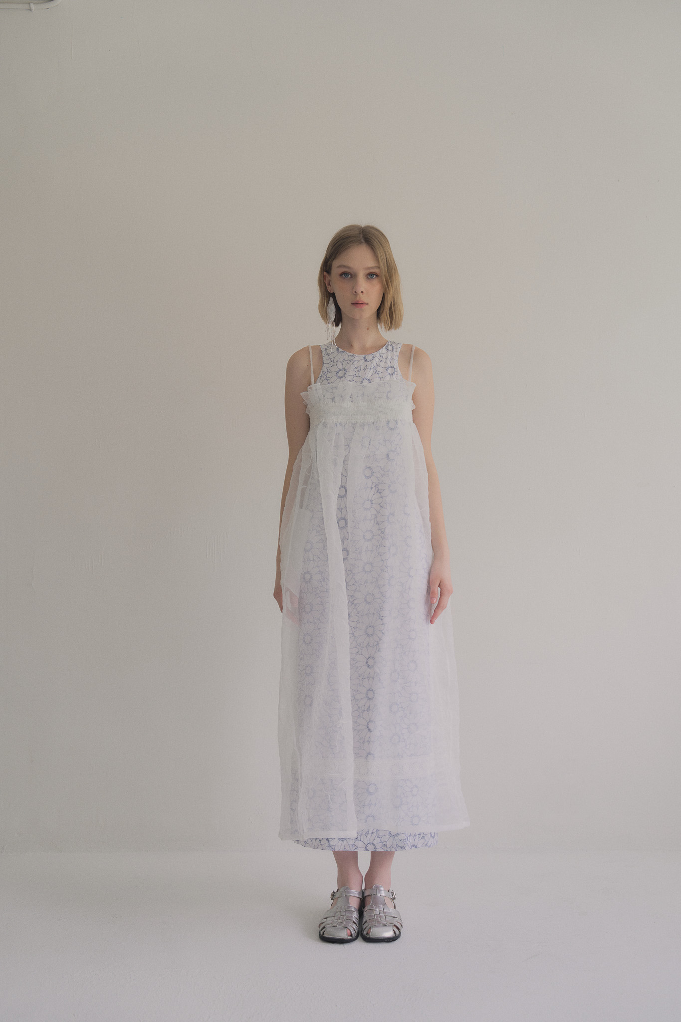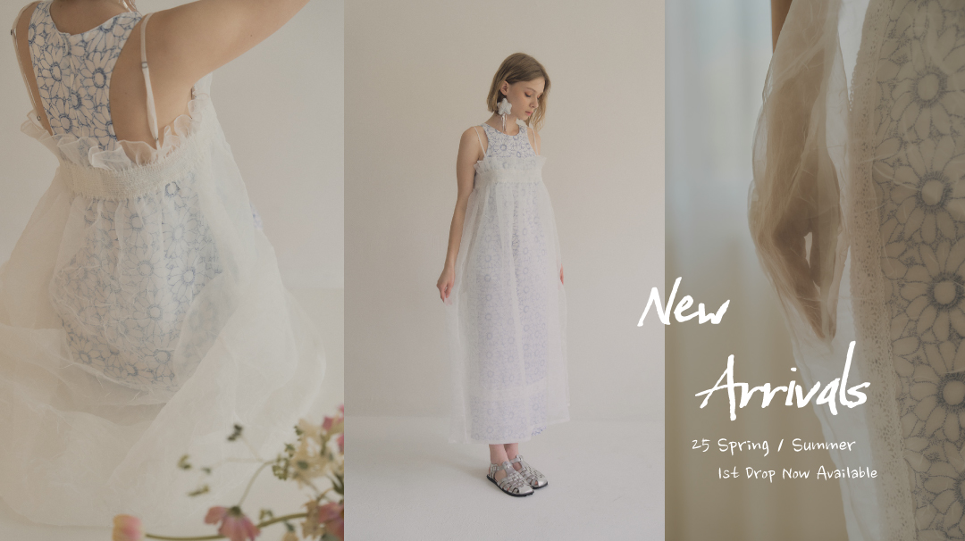 Persisting in rebellion within eleganceUsing Japan’s dimensional embroidery laceUtilizing different fabrics to stack up unique silhouettes.